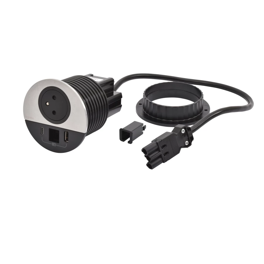 INCARA: DISQ 80 - 2P+Z / USB A+C / WYJŚCIE KABLOWE - 0,5 M WIELAND-METAL/CZARNY