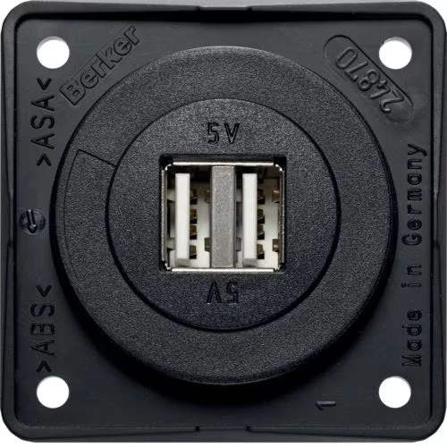 Integro Gniazdo USB ładowania podwójne, 12V, 3A czarny mat, mechanizm czarny 926022503