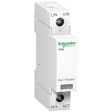 Ogranicznik przepięć iPRD40-T2-1 1-biegunowy Typ2 40 kA o numerze katalogowym A9L40100 w kategorii Ograniczniki przepięć typ 2, Ograniczniki przepięć. Produkt wyprodukowany przez markę SCHNEIDER ELECTRIC, seria ACTI 9.