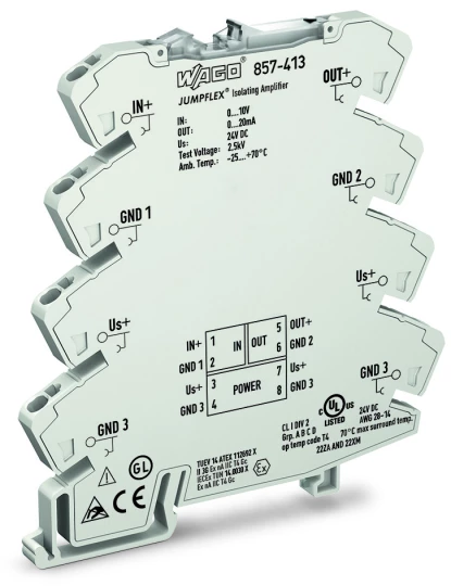 przetwornik separacyjny ze wzmocnieniem; napięciowy sygnał wejściowy; prądowy sygnał wyjściowy; napięcie zasilania 24 V DC; szerokość 6 mm; 2,50 mm²