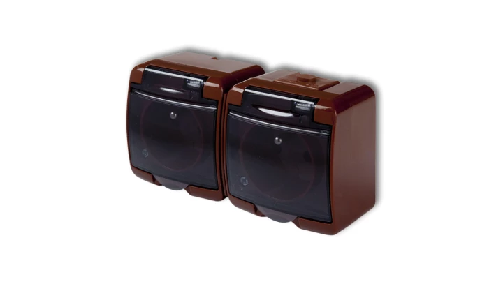 JUNIOR Gniazdo podwójne z/u (klapka dymna) brązowy IP54 4GHE-2d