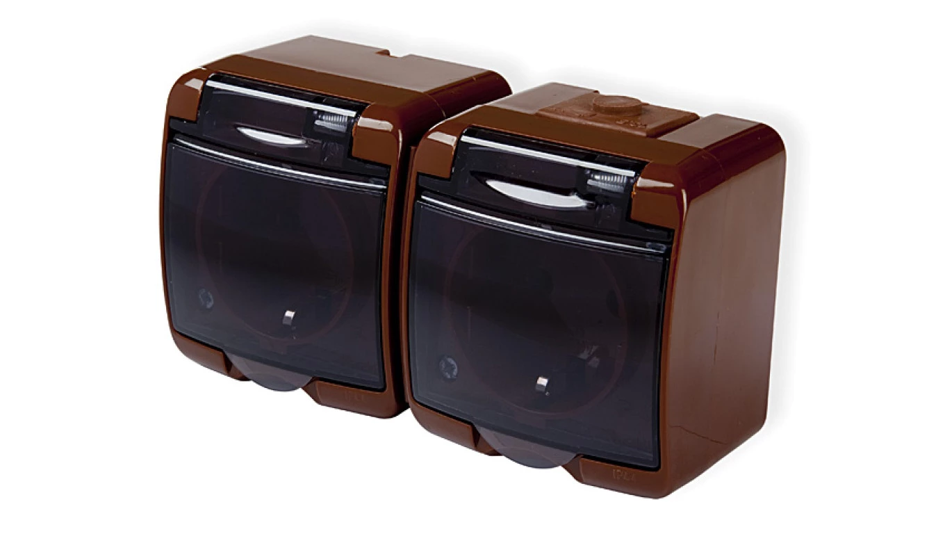 JUNIOR Gniazdo podwójne z/u (klapka brązowa) brązowy IP54 4GHE-2