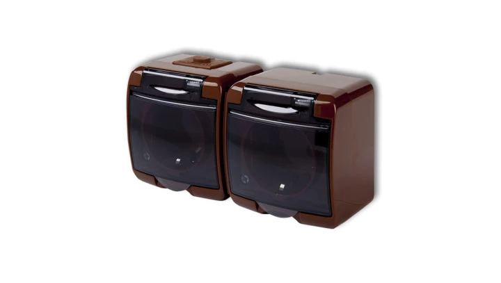 JUNIOR Gniazdo podwójne z/u (klapka brązowa) brązowy IP54 4GHE-2