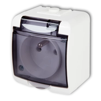JUNIOR Gniazdo pojedyncze z/u (klapka dymna) popielaty IP54 10GHE-1d