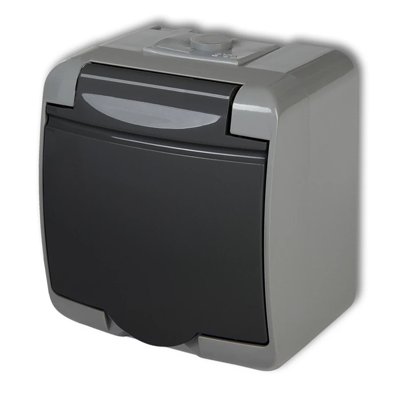 JUNIOR Gniazdo pojedyncze z/u (klapka dymna) popielaty IP54 10GHE-1d