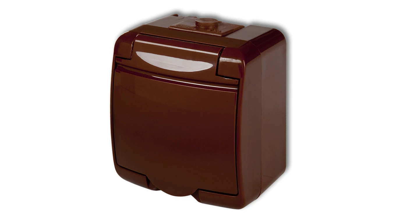 JUNIOR Gniazdo pojedyncze z/u (klapka dymna) brązowy IP54 4GHE-1d