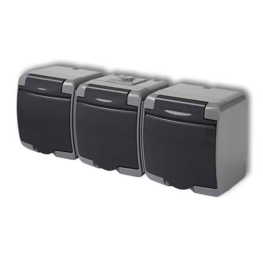 JUNIOR Gniazdo potrójne z/u (klapka dymna) popielaty IP54 10GHE-3d