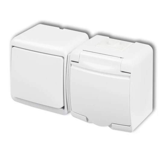 JUNIOR Łącznik jednobiegunowy z gniazdem hermetycznym SCHUKO (klapka biała) biały WGHH-1sp