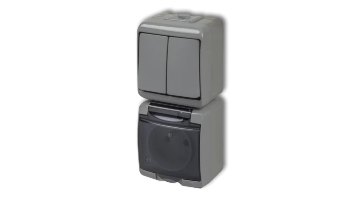 JUNIOR Łącznik świecznikowy + gniazdo hermetyczne (klapka dymna) popielaty 10WGHP-2d