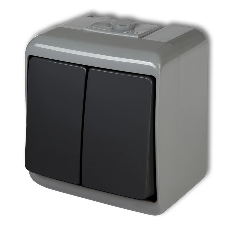 JUNIOR Gniazdo podwójne z/u (klapka dymna) popielaty IP54 10GHE-2d