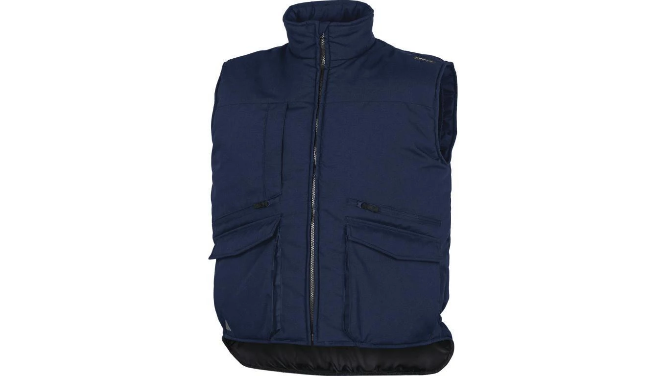 Kamizelka ocieplana z wieloma kieszeniami, z poliestru (65%) i bawełny (35%), pasuje do serii panostyle granatowy XXL o numerze katalogowym SIER2BMXX w kategorii Kamizelki robocze, Odzież robocza. Produkt wyprodukowany przez markę DELTA PLUS.