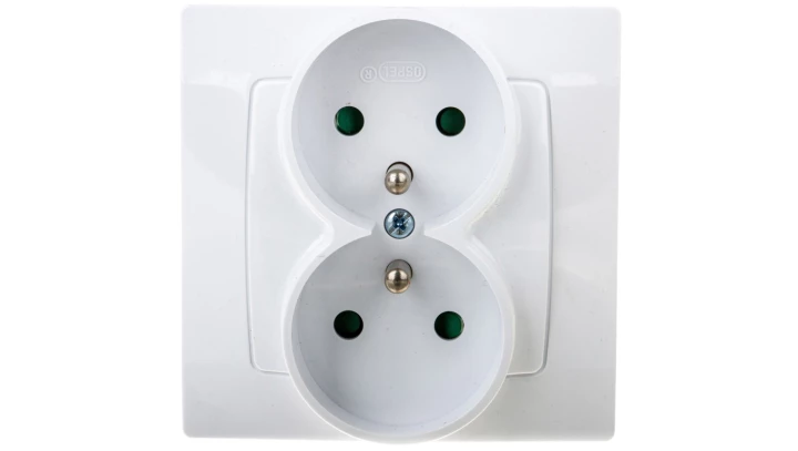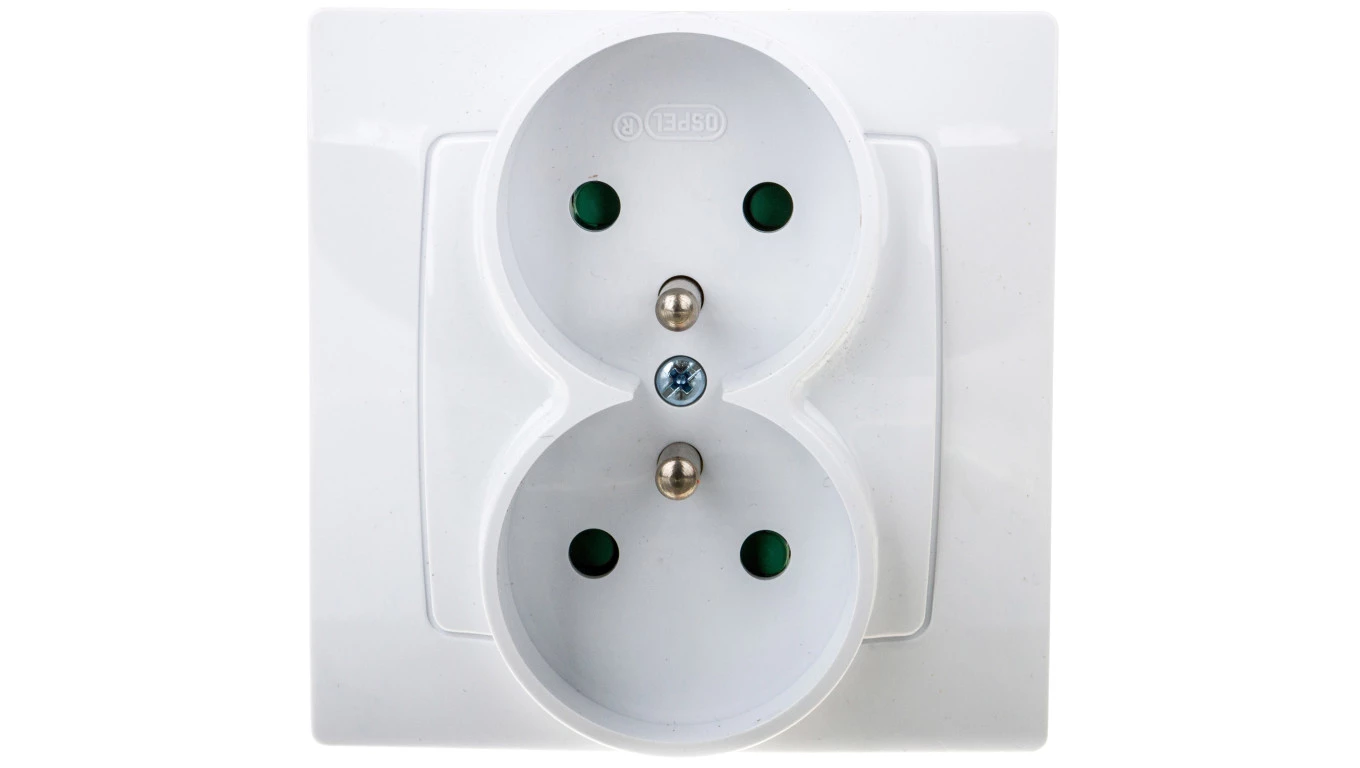 KARO BIAŁY GNIAZDO 2X Z/U Z PRZESŁONAMI ZACISKI ŚRUBOWE 16A 250V