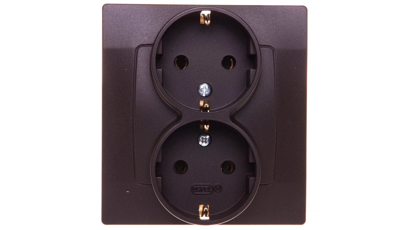 KARO CZEKOLADOWY METALIK GNIAZDO 2X SCHUKO ZACISKI ŚRUBOWE 16A 250V