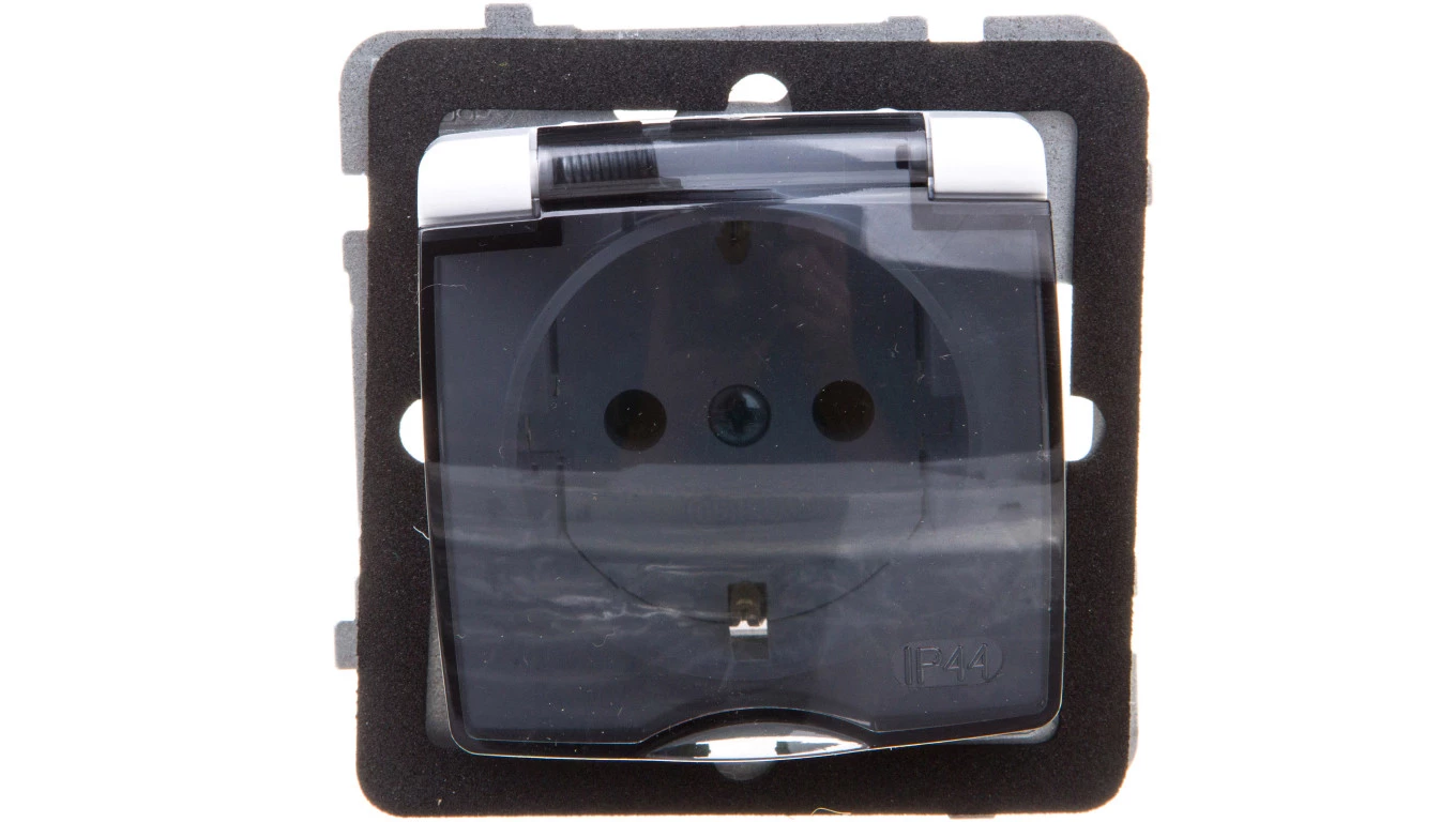 Simon 54 Gniazdo bryzgoszczelne z/u IP44 z klapką transparentną antracyt DGZ1BZ.01/48A