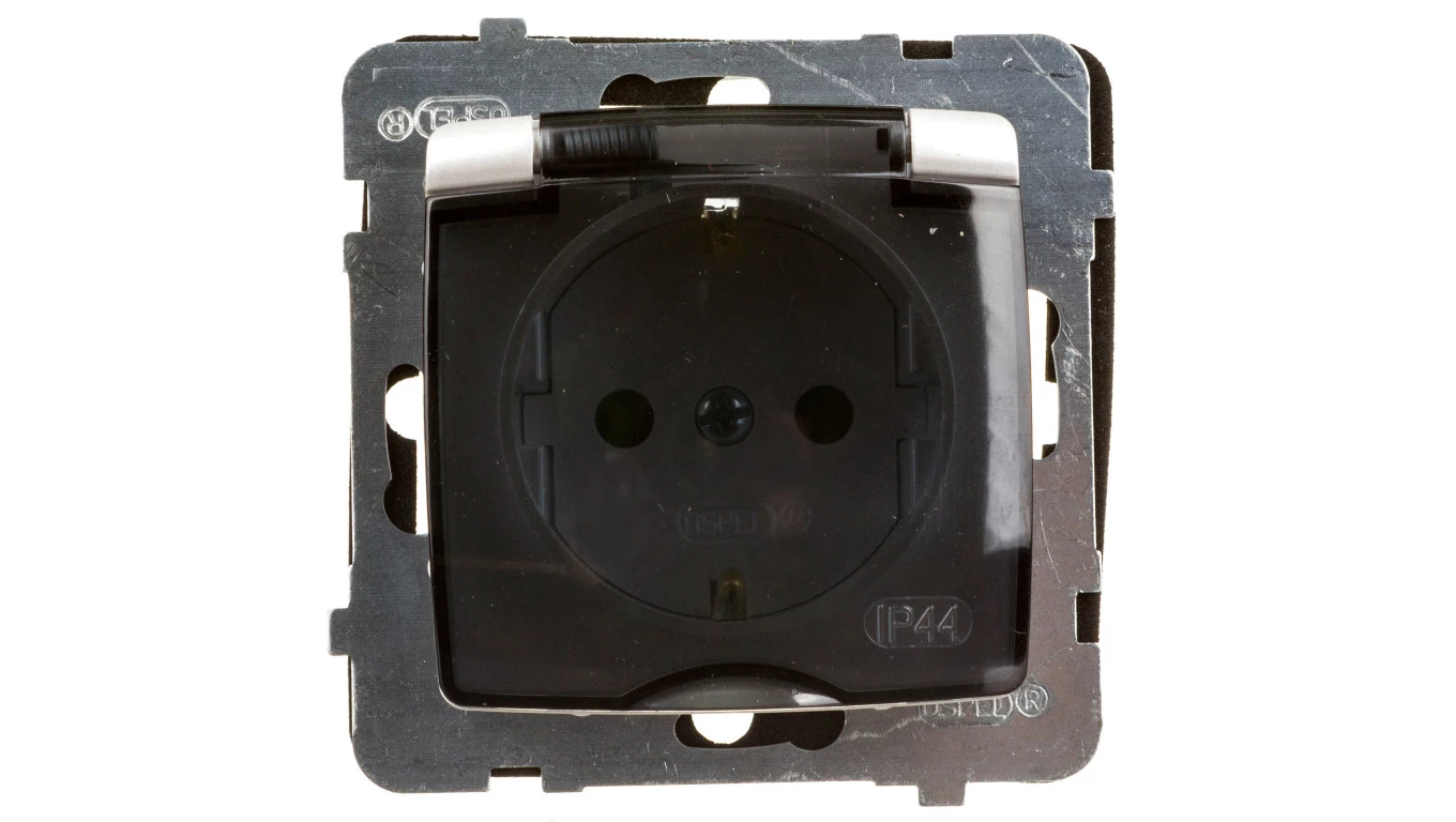 Simon 54 Gniazdo bryzgoszczelne z/u IP44 z klapką transparentną antracyt DGZ1BZ.01/48A
