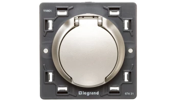 KARO Gniazdo bryzgoszczelne z/u Schuko IP44 z przesłonami klapka przezroczysta srebrny perłowy GPH-1SSP/m/43/d