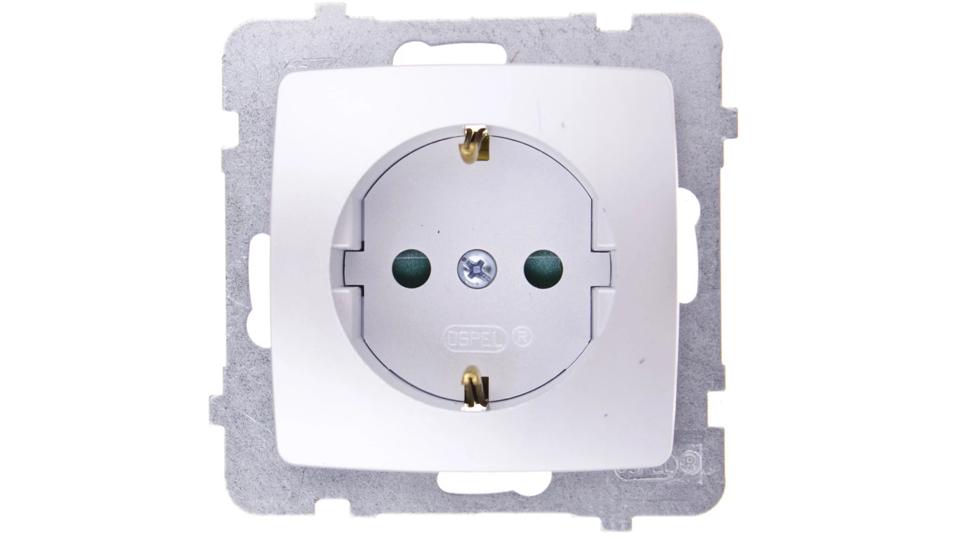 Simon 54 Gniazdo pojedyncze SCHUKO z/u 16A IP20 z przesłoną torów, szybkozłącza, białe DGSz1CZ.01/11