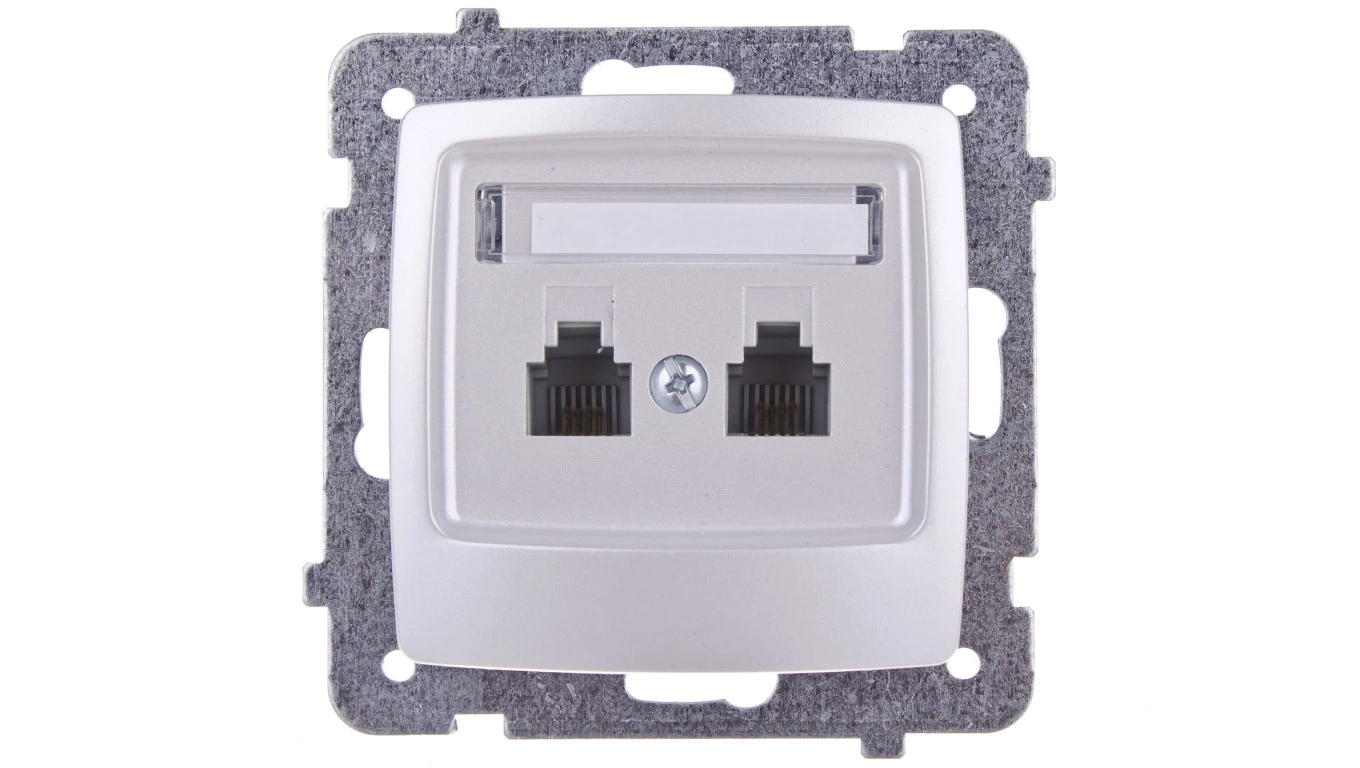 KARO Gniazdo telefoniczne podwójne RJ11 równoległe srebrny perłowy GPT-2SR/m/43