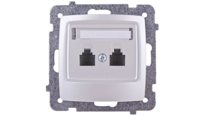 KARO Gniazdo telefoniczne podwójne RJ11 niezależne srebrny perłowy GPT-2SN/m/43