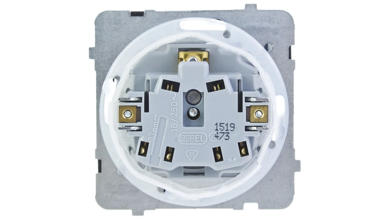 Simon 54 Gniazdo pojedyncze SCHUKO z/u 16A IP20 z przesłoną torów, szybkozłącza, białe DGSz1CZ.01/11