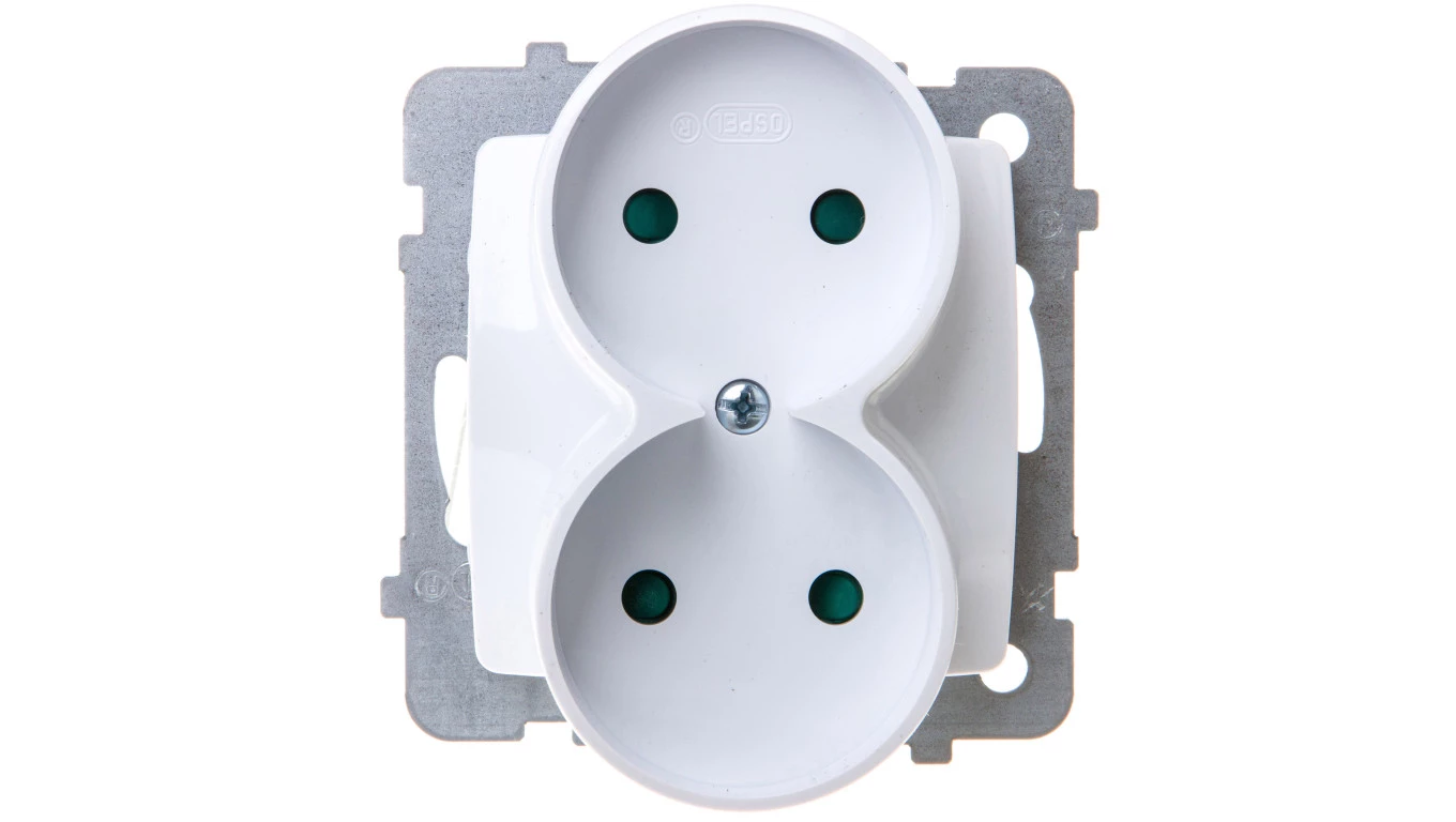 KARO MODUŁ BIAŁY GNIAZDO 2X B/U Z PRZESŁONAMI ZACISKI ŚRUBOWE 16A 250V