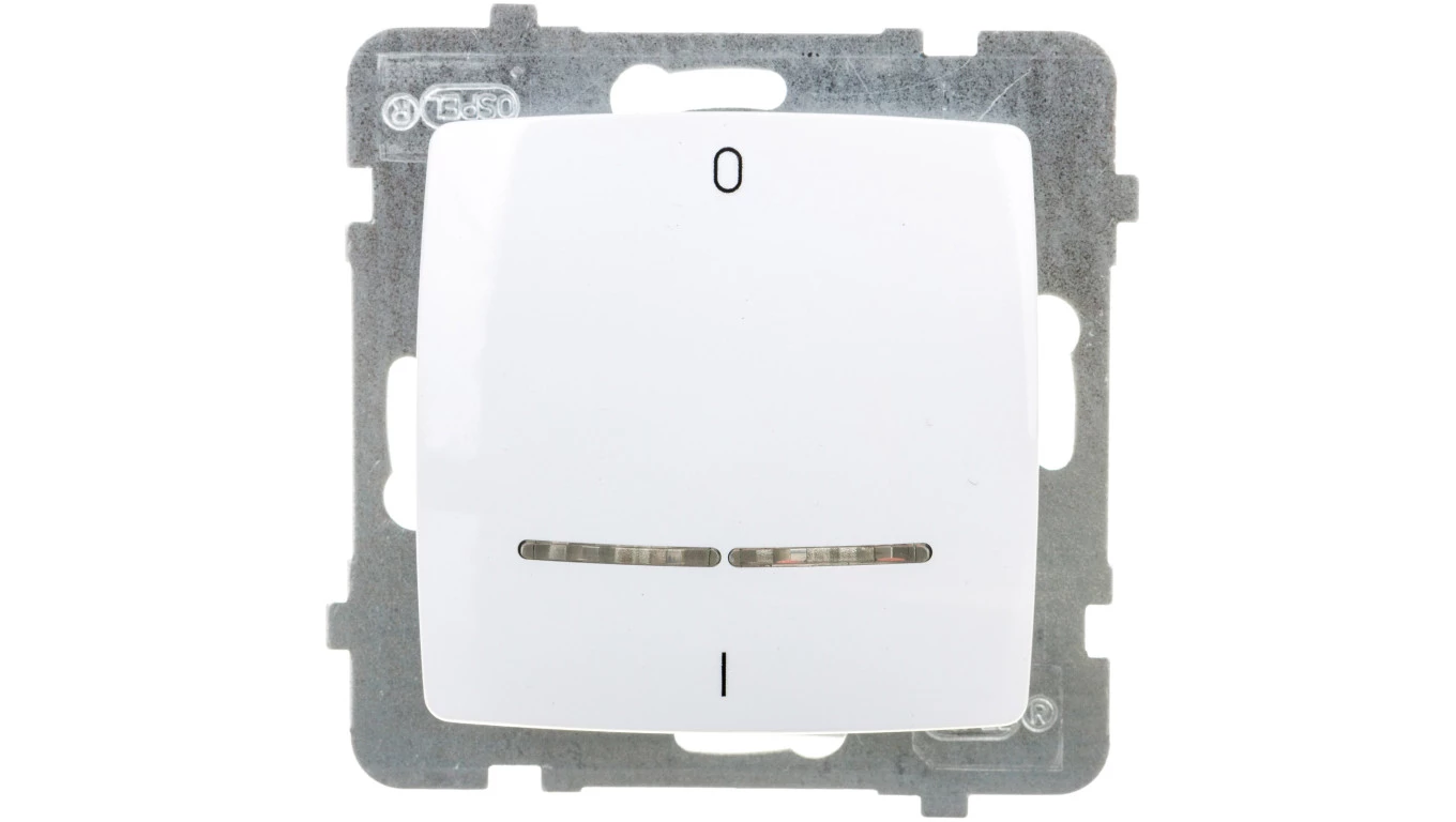 KARO MODUŁ BIAŁY ŁĄCZNIK 2-BIEGUNOWY PODŚWIETLANY POMARAŃCZOWY 0-1 ZACISKI ŚRUBOWE 10AX 250V