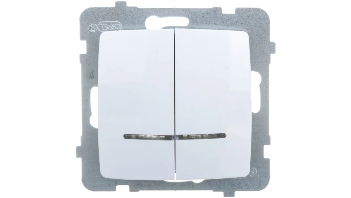 KARO MODUŁ BIAŁY ŁĄCZNIK SERYJNY PODŚWIETLANY POMARAŃCZOWY ZACISKI ŚRUBOWE 10AX 250V