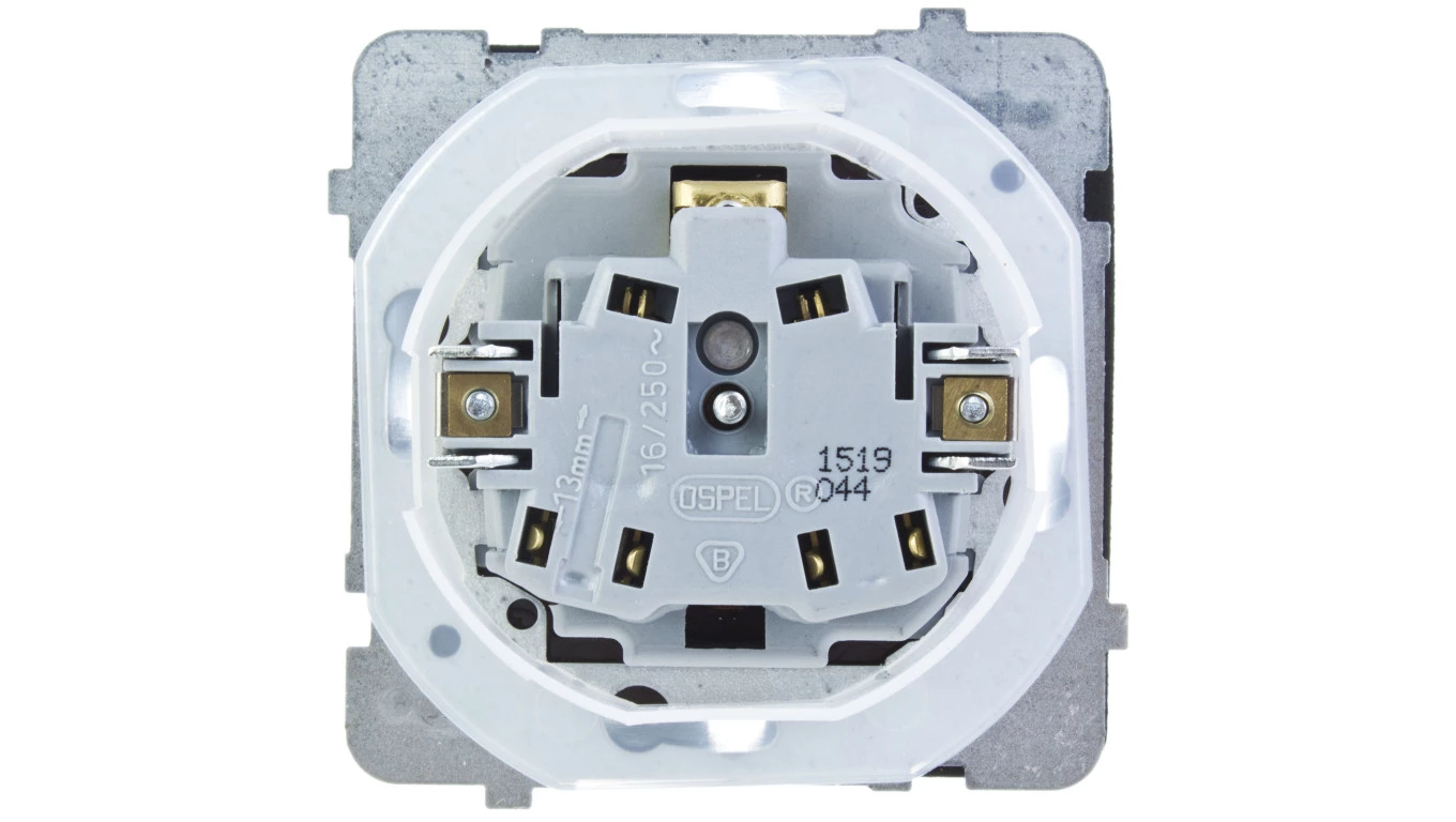 Simon 54 Gniazdo pojedyncze SCHUKO z/u 16A IP20 z przesłoną torów, szybkozłącza, białe DGSz1CZ.01/11