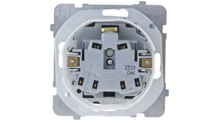 Simon 54 Gniazdo pojedyncze SCHUKO z/u 16A IP20 z przesłoną torów, szybkozłącza, białe DGSz1CZ.01/11