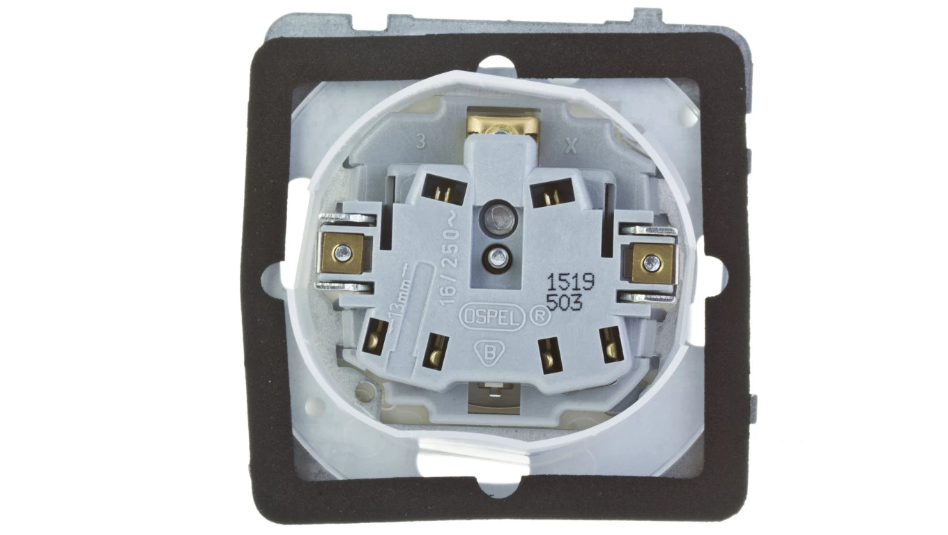 Simon 54 Gniazdo pojedyncze SCHUKO z/u 16A IP20 z przesłoną torów, szybkozłącza, białe DGSz1CZ.01/11