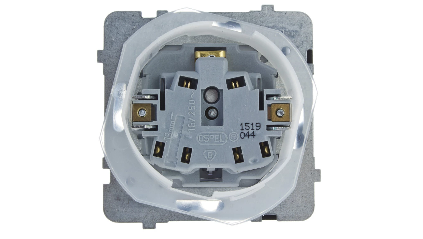 KARO MODUŁ SREBRNY PERŁOWY GNIAZDO 1X Z/U Z KLAPKĄ DYMNĄ IP44 Z PRZESŁONAMI ZACISKI ŚRUBOWE 16A 250V