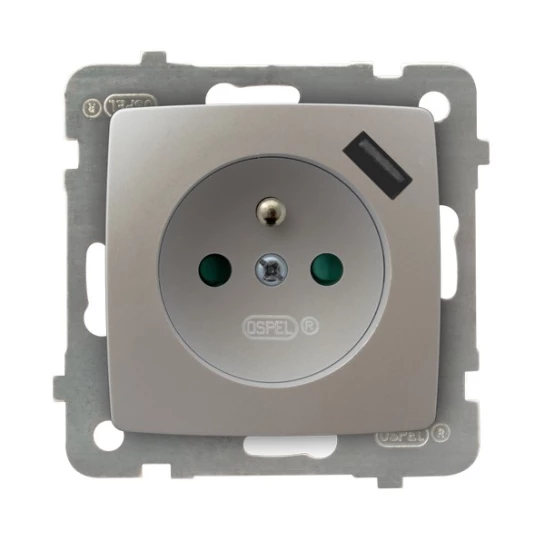 KARO MODUŁ SREBRNY PERŁOWY GNIAZDO 1X Z/U Z PRZESŁONAMI ZACISKI SPRĘŻYNOWE + ŁADOWARKA USB 16A 250V
