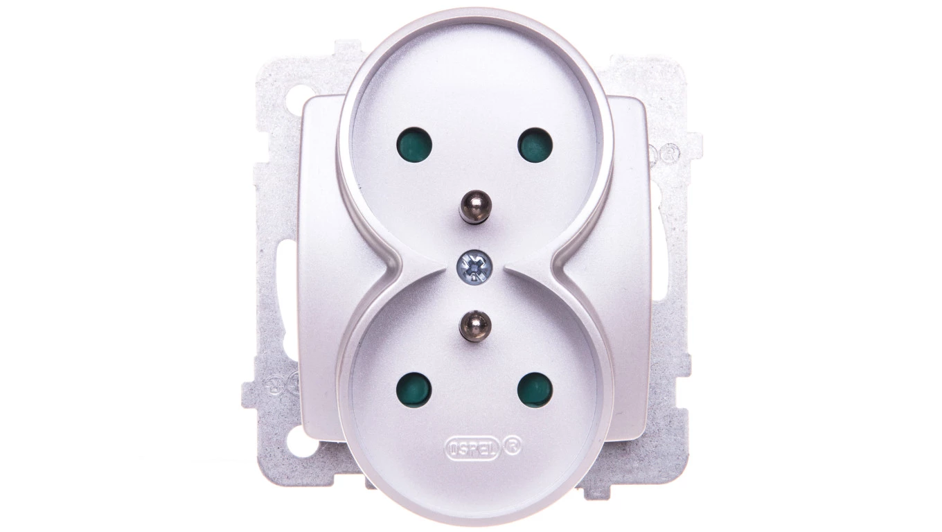 KARO MODUŁ SREBRNY PERŁOWY GNIAZDO 2X Z/U Z PRZESŁONAMI ZACISKI ŚRUBOWE 16A 250V