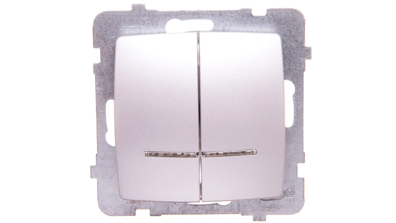 KARO MODUŁ SREBRNY PERŁOWY ŁĄCZNIK SERYJNY PODŚWIETLANY NIEBIESKI ZACISKI ŚRUBOWE 10AX 250V