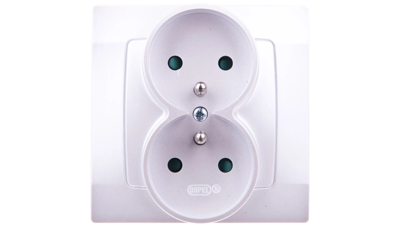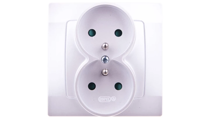 KARO SREBRNY PERŁOWY GNIAZDO 2X Z/U Z PRZESŁONAMI ZACISKI ŚRUBOWE 16A 250V