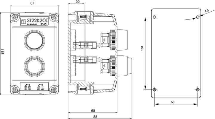 Kaseta sterownicza 2-otworowa z przyciskami zielony/czerwony IP65 ST22K2\01-1