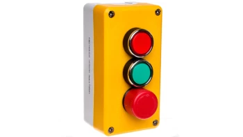 P1EC400E40 OBUDOWA KASETA 1X Z PRZYCISKIEM GRZYBKOWYM 1R FI40 PRZEZ OBRÓT CZERWONY IP65