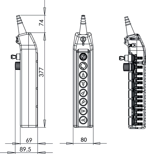Kaseta Suwnicowa z przyciskiem pokrętnym kluczykiem (1NO), z przyciskiem bezpieczeństwa (1NC), przyciski dwustopniowe: wciągnik góra (2NO) - wciągnik dół (2NO), suwnica w przód (2NO) - suwnica w tył (2NO), lewo (2NO) - prawo (2NO) o numerze katalogowym PKS-8\W03 w kategorii Przyciski i przełączniki sterownicze - akcesoria, Przyciski i przełączniki sterownicze. Produkt wyprodukowany przez markę SPAMEL, seria PKS.