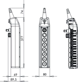 Kaseta Suwnicowa z przyciskiem bezpieczeństwa 1NC, przyciski: wciągnik góra (1NO) - wciągnik dół (1NO) o numerze katalogowym PKS-3\W01 w kategorii Przyciski i przełączniki sterownicze - akcesoria, Przyciski i przełączniki sterownicze. Produkt wyprodukowany przez markę SPAMEL, seria PKS.
