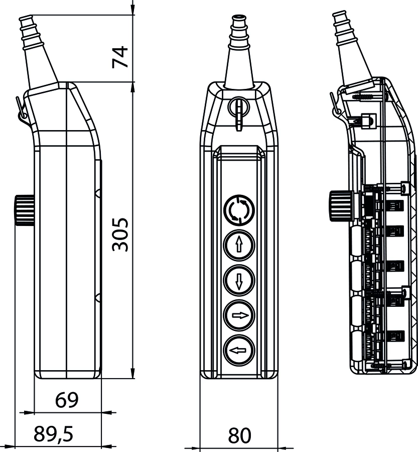 Kaseta Suwnicowa z przyciskiem bezpieczeństwa 1NC, przyciski: wciągnik góra (1NO) - wciągnik dół (1NO), lewo (1NO) - prawo (1NO) o numerze katalogowym PKS-6\W01 w kategorii Przyciski i przełączniki sterownicze - akcesoria, Przyciski i przełączniki sterownicze. Produkt wyprodukowany przez markę SPAMEL, seria PKS.