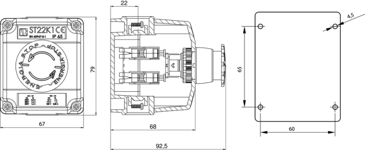 Kaseta z przyciskiem bezpieczeństwa przez obrót 1Z 1R IP65 ST22K108-2