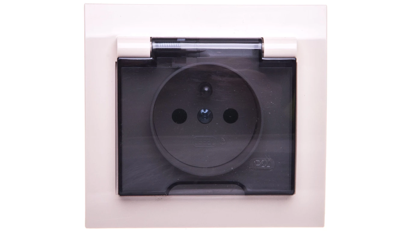 KIER Gniazdo bryzgoszczelne z/u IP44 z przesłonami klapka przezroczysta beżowe GPH-1WZP/01/d