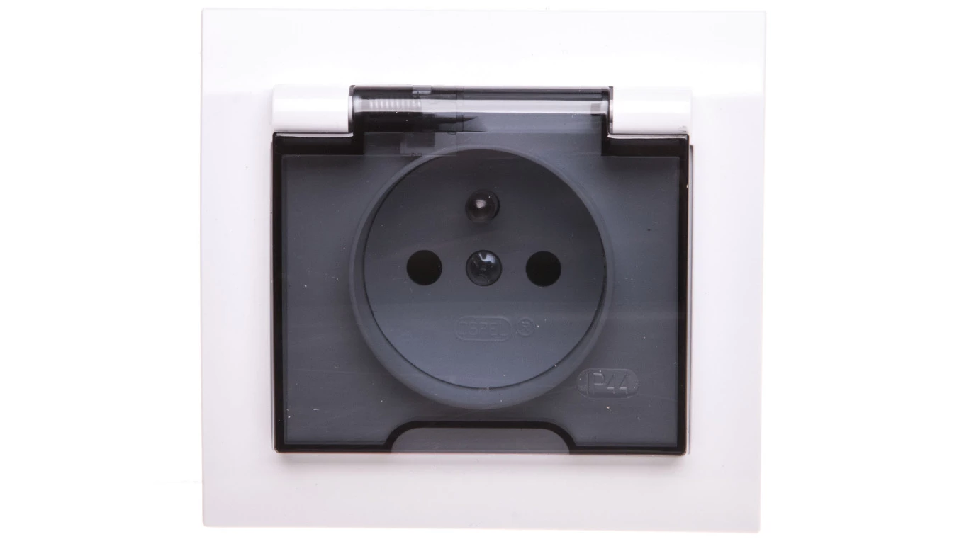 KIER Gniazdo bryzgoszczelne z/u IP44 z przesłonami klapka przezroczysta białe GPH-1WZP/00/d