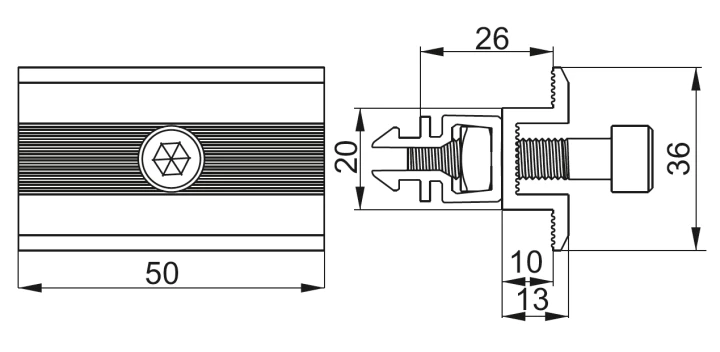 Pośredni uchwyt panela KLICK PUFK o numerze katalogowym 890300 w kategorii Konstrukcje PV, Konstrukcje montażowe. Produkt wyprodukowany przez markę BAKS, seria PUKK.