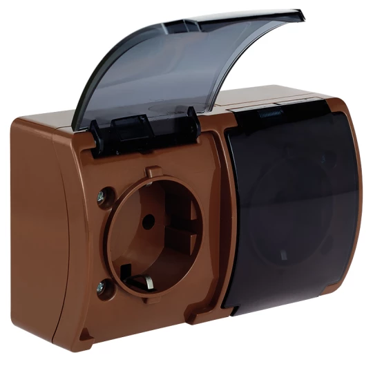 Koala Gniazdo podwójne SCHUKO n/t IP44 brąz z klapką dymną VG 182-52 61.401