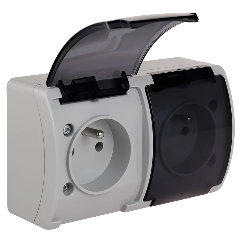 HYDRO Gniazdo hermetyczne podwójne z/u IP44 z klapką klinkier 122236