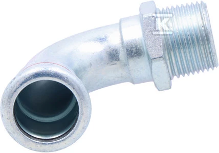 Kolano 90° GZ Steel - 22 R3/4" o numerze katalogowym 1509070005 w kategorii Kształtki do stali węglowej zaprasowywanej, Ze stali węglowej. Produkt wyprodukowany przez markę KAN-THERM, seria STEEL FITTINGS.