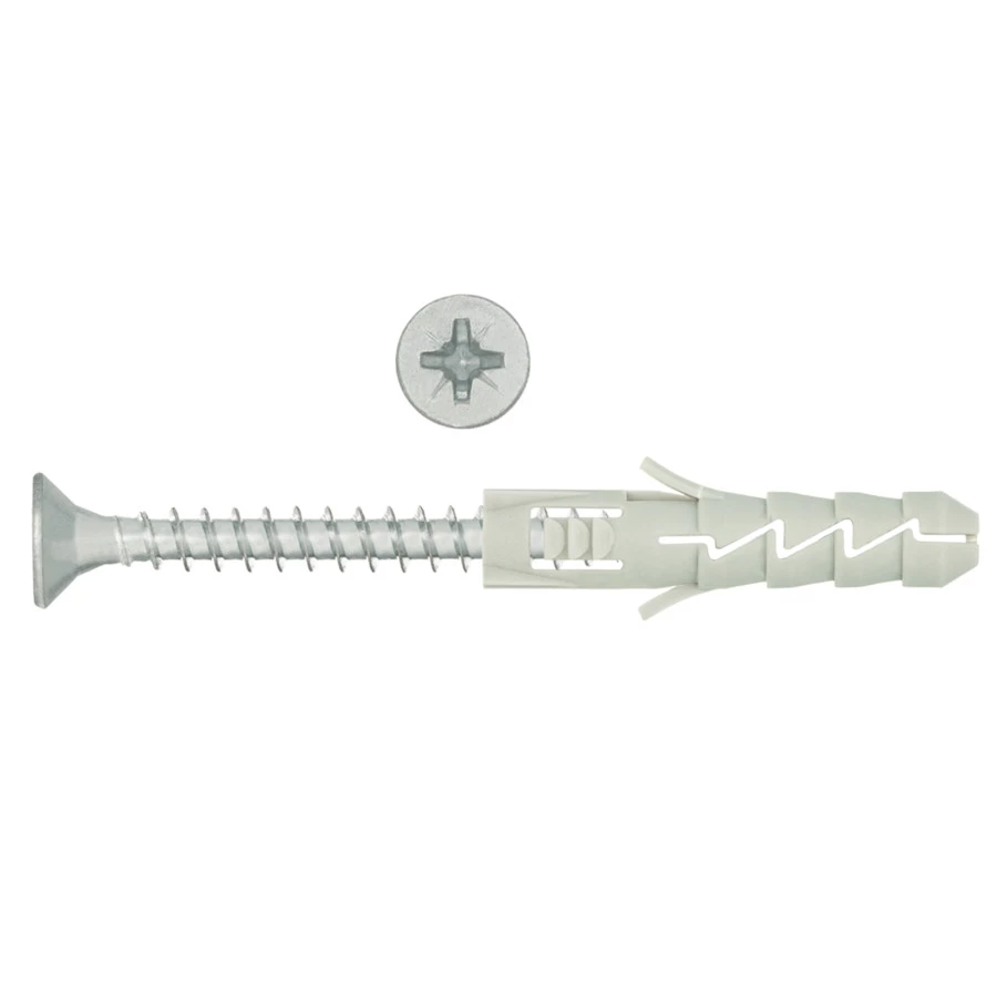 Kołek rozporowy FIX fi 6 z wkrętem 3,5x30 mm polipropylen o numerze katalogowym FIX-06+ w kategorii Kołki z łbem stożkowym, Kołki standardowe. Produkt wyprodukowany przez markę KOELNER, seria FIX.