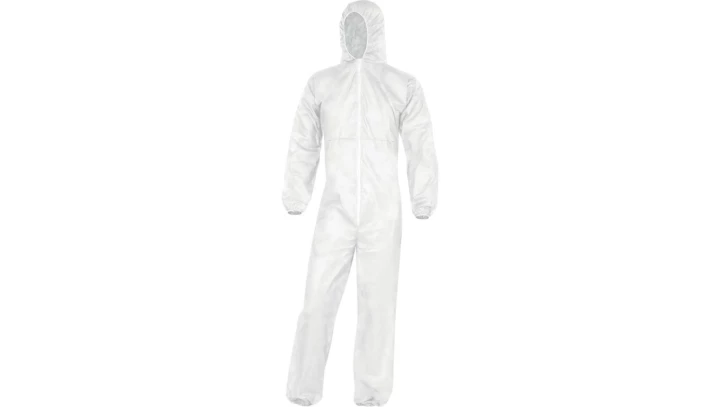 Kombinezon z kapturem z włókniny polipropylenowej biały M o numerze katalogowym PO106BCTM w kategorii Kombinezony, Odzież robocza. Produkt wyprodukowany przez markę DELTA PLUS, seria PO106.