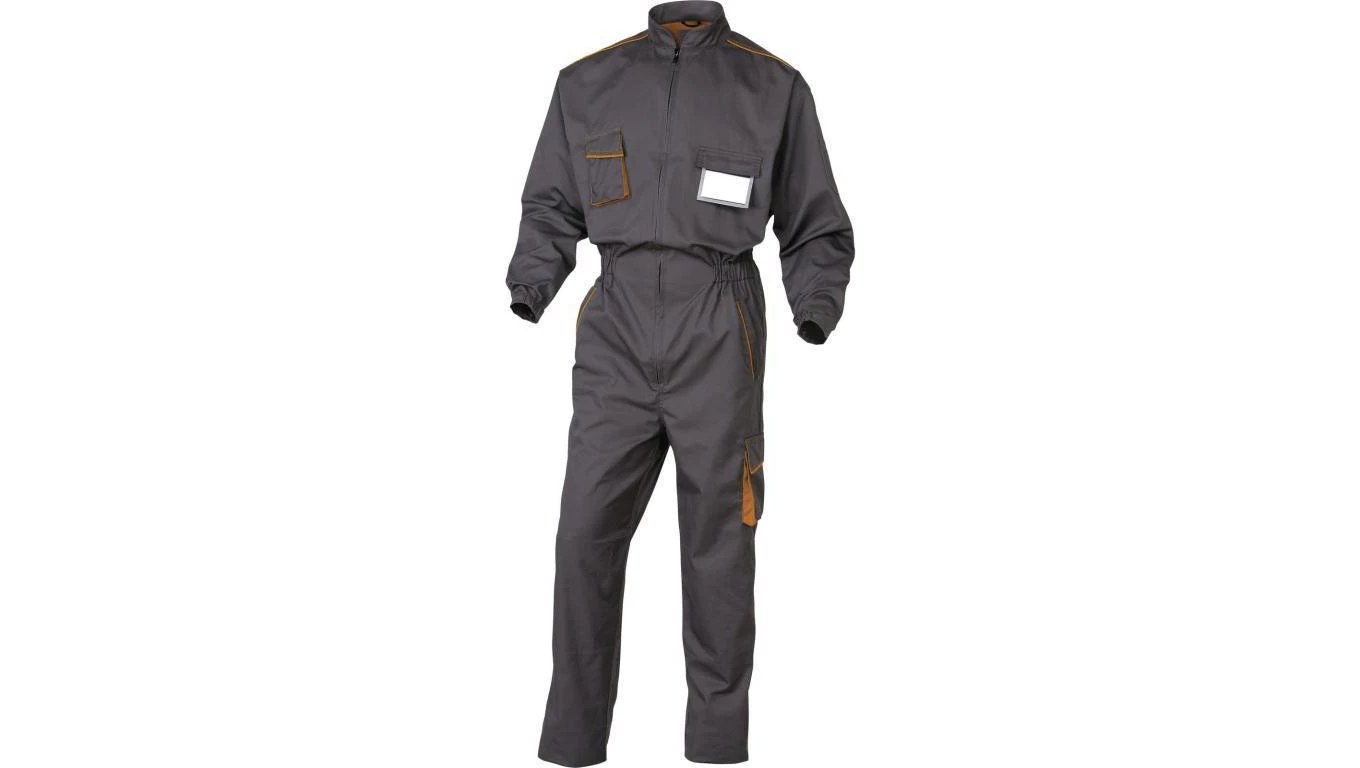 Kombinezon panostyle zapinany na 1 zamek, z poliestru (65%) i bawełny (35%), 235 g/m2 szaro-pomarańczowy 3XL o numerze katalogowym M6COMGO3X w kategorii Kombinezony, Odzież robocza. Produkt wyprodukowany przez markę DELTA PLUS, seria M6COM.